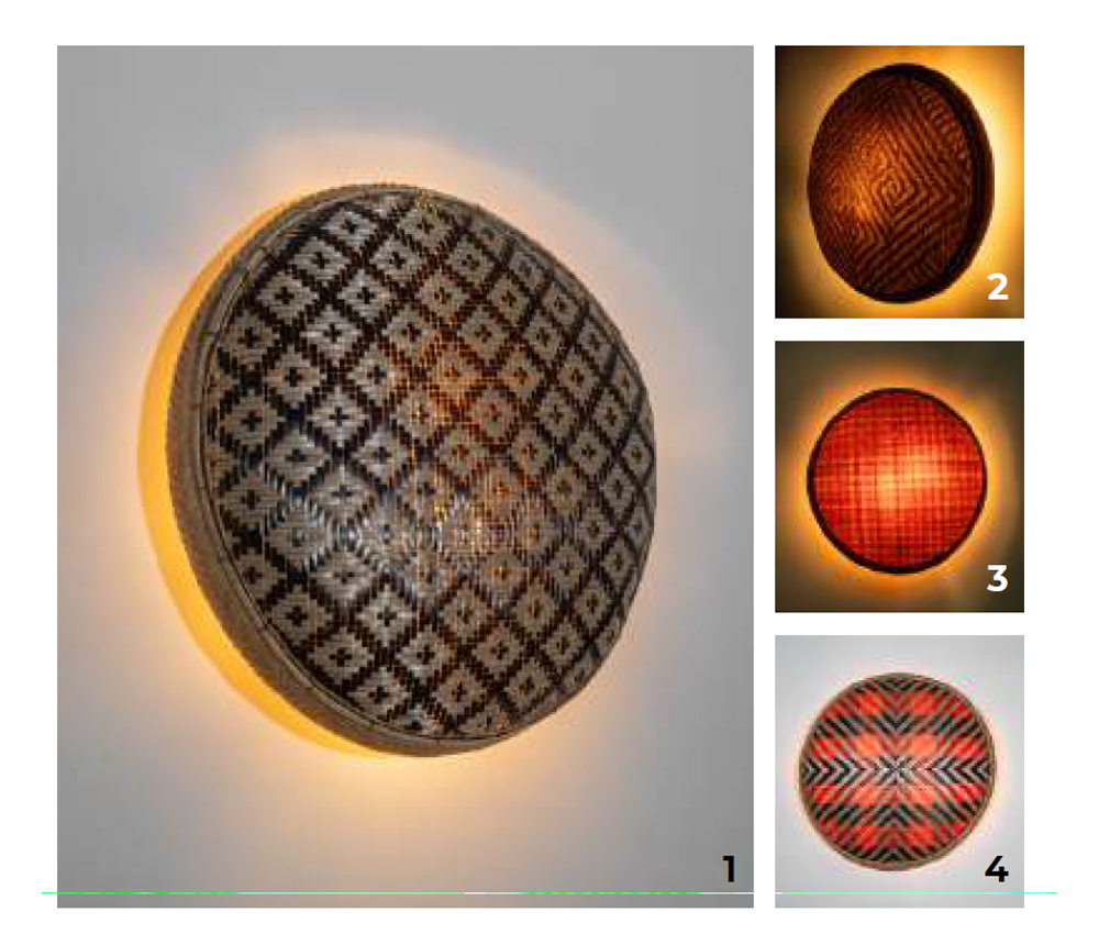 A Arandela Munclair Baniwa 2392, criação de Silvia Carneiro, traz a estética artesanal da coleção Baniwa em uma leitura contemporânea e acolhedora. O corpo circular mede Ø40 cm x A10 cm e o balaio Ø40 cm x A7 cm, formando camadas de luz e sombra que valorizam a parede. A versão com rabicho possibilita instalação aparente com praticidade e charme.