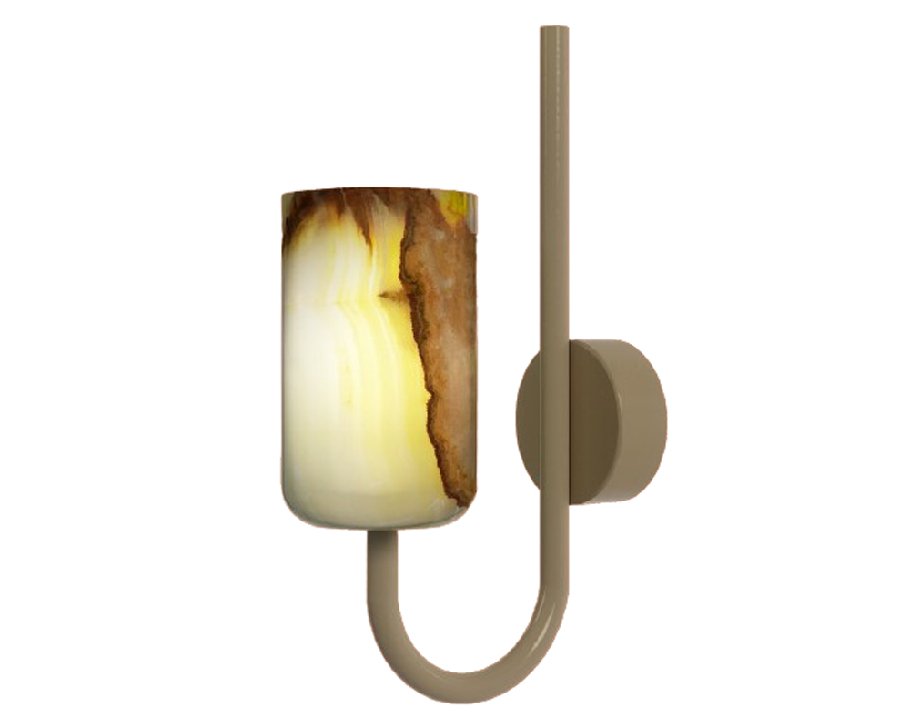 A Arandela DNA Iluminação A0603, integrante da Linha Une, é uma peça elegante e compacta, ideal para quem busca iluminação decorativa com o charme e a naturalidade da pedra ônix. Seu formato Ø7 × 27 cm proporciona visual minimalista e sofisticado, perfeito para paredes que pedem destaque suave.
