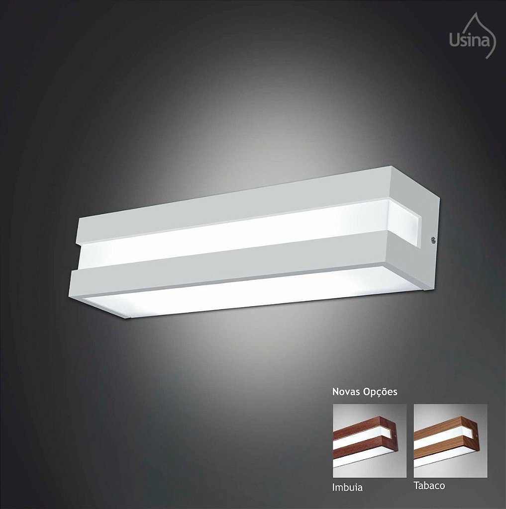 Arandela com acabamento em alumínio e difusor em acrílico leitoso.
