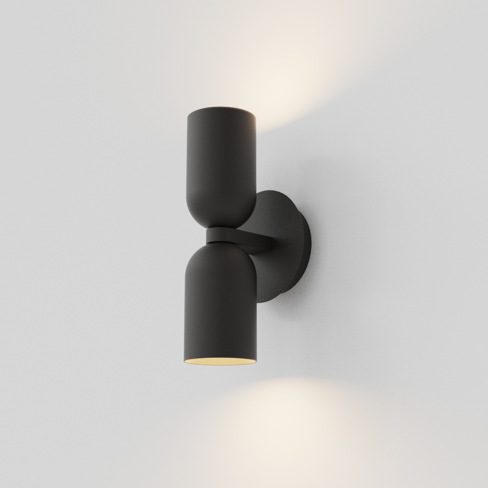Com altura aproximada de 20 cm, seu formato equilibrado permite iluminação dupla com controle preciso do facho luminoso, sendo perfeita para destaque arquitetônico e iluminação de apoio.