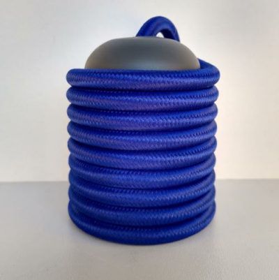 O cabo PP Dueluci com revestimento em tecido azul escuro royal é ideal para quem precisa de alto padrão estético e segurança elétrica. O rolo de 100 metros é perfeito para montagem de várias luminárias e pendentes decorativos.
