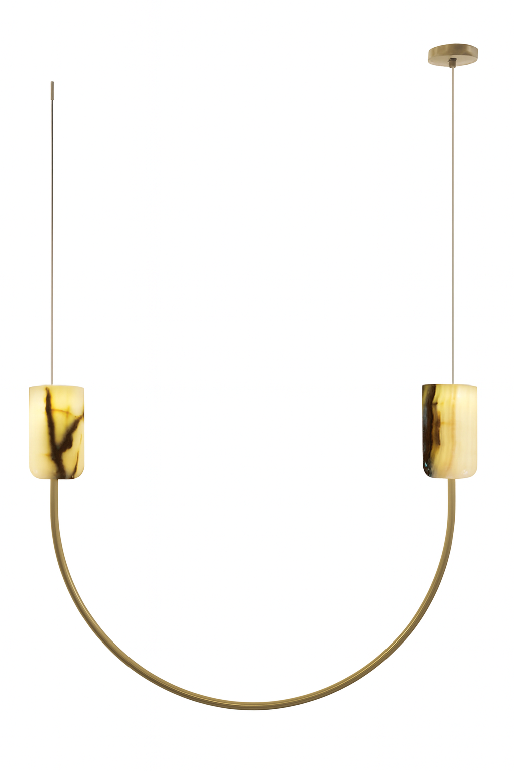 O Lustre DNA Iluminação L0604, da Linha Due, apresenta proporções maiores com 65 × 55 cm, destacando ainda mais a beleza natural da pedra ônix. Seu design marcante e elegante faz dele uma peça ideal para ambientes que buscam iluminação decorativa com presença sofisticada.