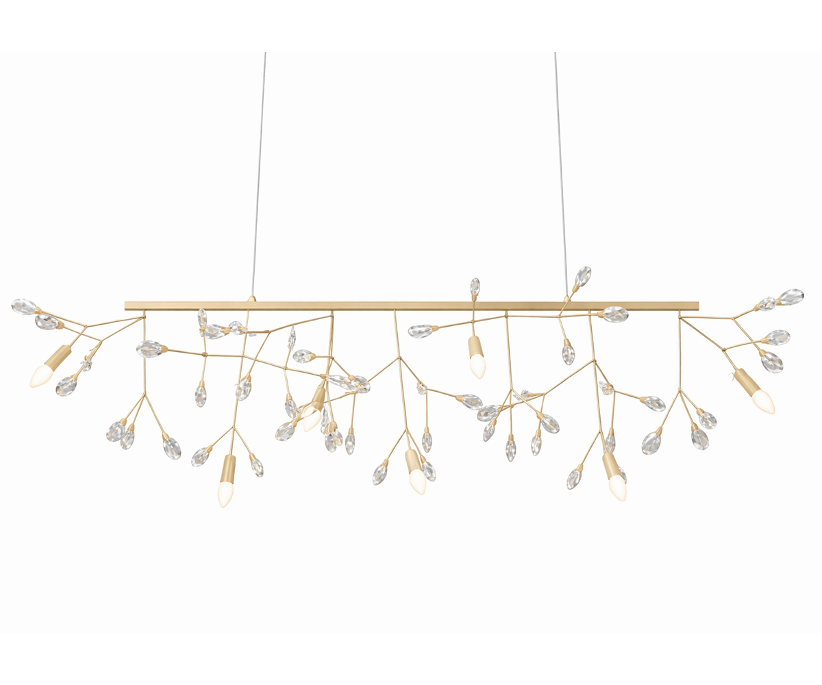 O Lustre Linear Valenssa traz um design luxuoso e contemporâneo, combinando a leveza estrutural do formato linear com a elegância do cristal amêndoa. Com dimensões de 130 × 48 cm de altura, a peça se torna destaque em salas de jantar, living, halls e ambientes sofisticados.