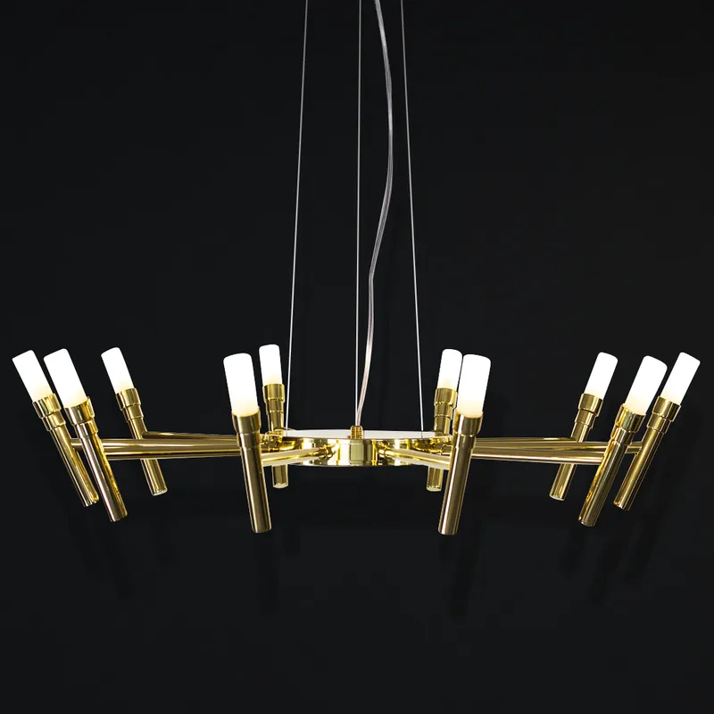Produzido integralmente em latão, o lustre oferece durabilidade superior, resistência e um visual refinado que valoriza ambientes residenciais e comerciais de alto nível. Seus doze braços criam uma composição equilibrada e marcante.