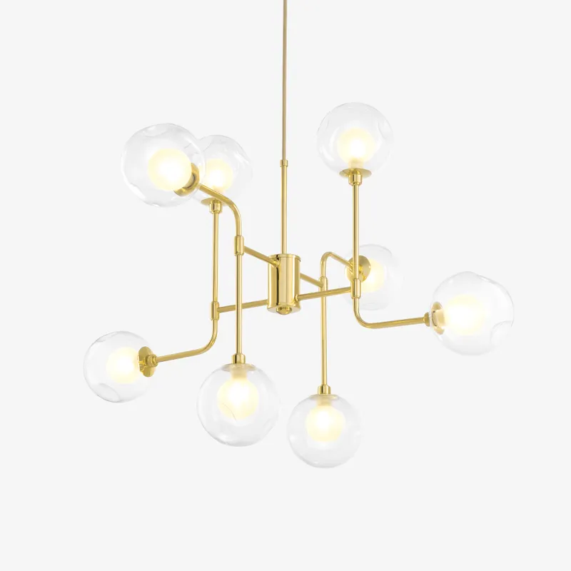 O Lustre PRETTI da Golden Art Iluminação é uma peça de design refinado que combina acabamento premium em latão com iluminação decorativa elegante. Com diâmetro de 55cm e oito soquetes G9, oferece excelente distribuição de luz e presença estética sofisticada.