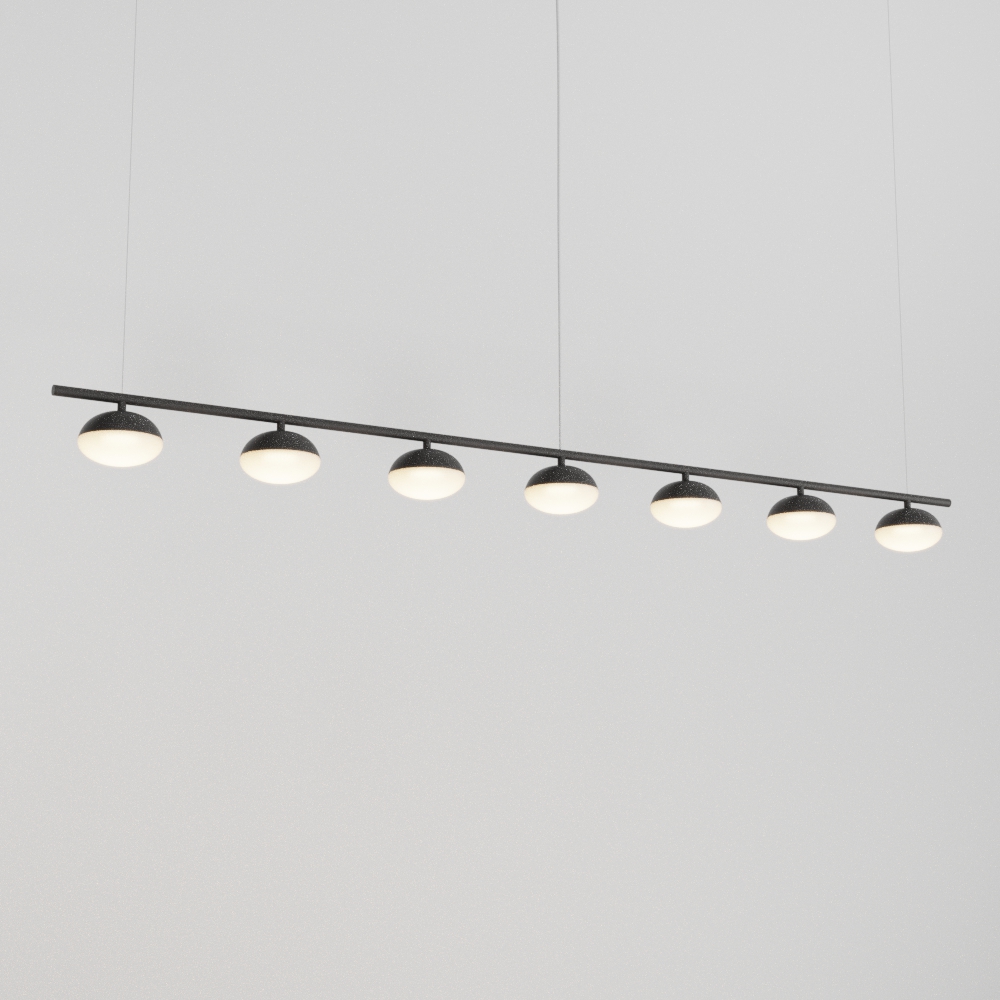 Produzido integralmente em latão, o pendente apresenta excelente durabilidade, resistência e acabamento refinado. Sua composição linear com sete pontos de luz cria um visual imponente e elegante, ideal para ambientes amplos e bem planejados.