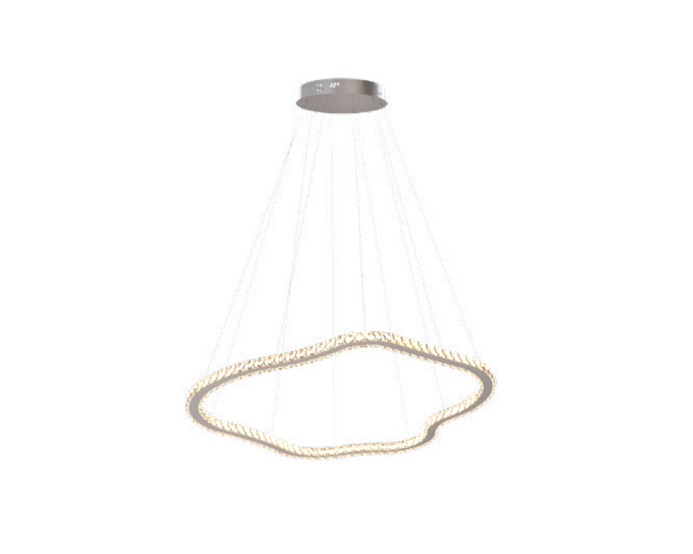 O Pendente Aliança Orgânica Duplo une dois aros sobrepostos nos diâmetros 100 cm e 80 cm, criando um conjunto harmonioso, fluido e altamente decorativo. Uma peça protagonista para ambientes sofisticados.