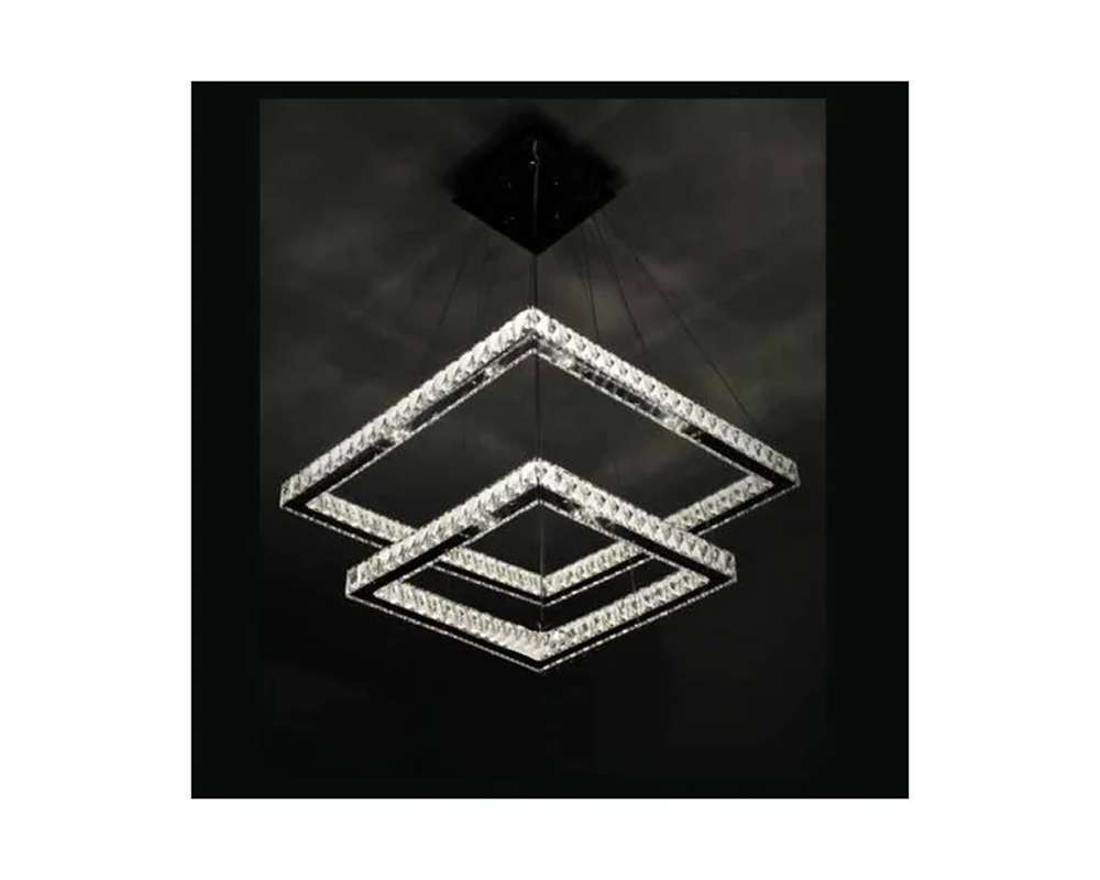 O Pendente Aliança Quadrada Duplo 50/30cm combina duas estruturas quadradas em diferentes tamanhos (50 cm e 30 cm), criando composição geométrica dinâmica e sofisticada, ideal para ambientes que pedem protagonismo visual.