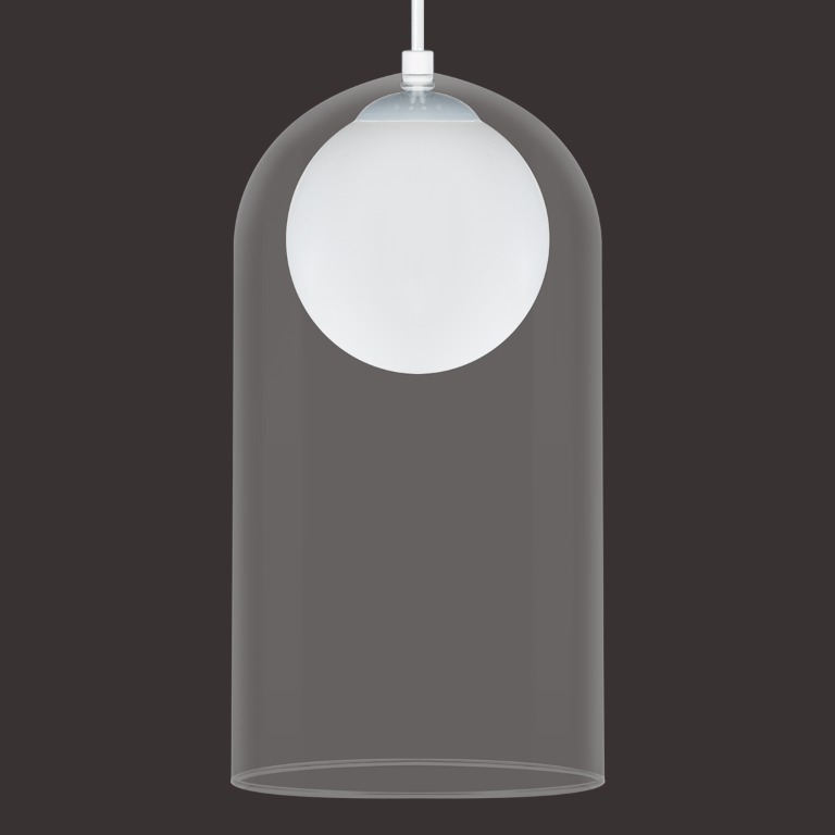 O Pendente Florença 407-G combina o brilho do vidro cristal com a delicadeza da esfera branca fosca interna, criando um efeito de iluminação suave e uniforme. Seu formato alongado e acabamento premium tornam esta peça ideal para projetos de decoração moderna e sofisticada.