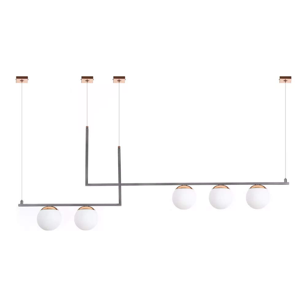 O PD-5408 é um pendente linear sofisticado com 5 lâmpadas G9 e globos de Ø120 mm. Suas dimensões C1300 × L150 × A570 mm tornam a peça perfeita para mesas, ilhas e salas modernas.