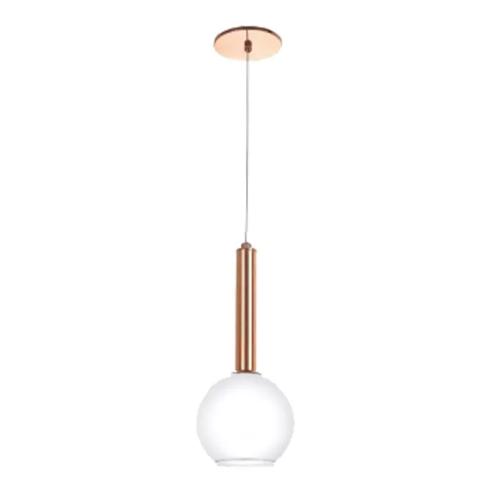 O PD-5436 é um pendente de altura extra, totalizando 2800 mm, ideal para pé-direito duplo, escadas e ambientes amplos. Utiliza 1 G9 com globo de Ø120 mm.