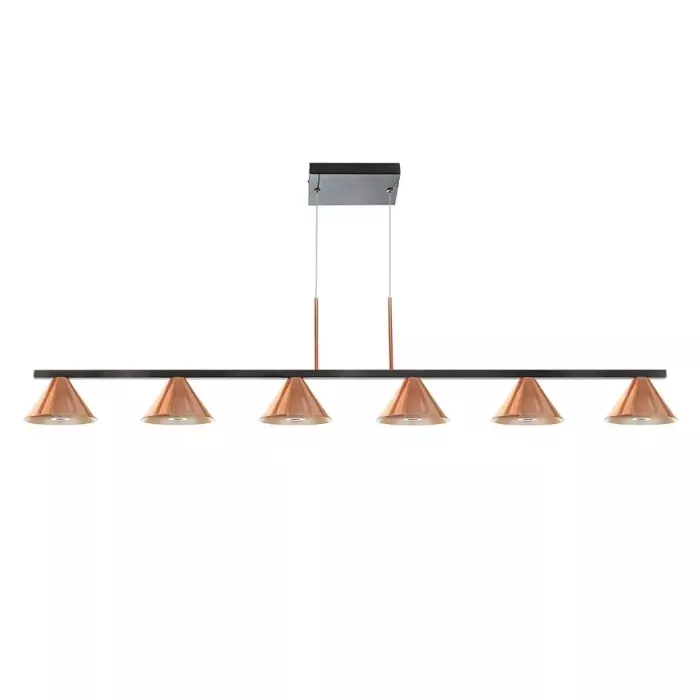 O Pendente Old Artisan PD-5632 apresenta estrutura linear robusta, produzida artesanalmente em alumínio, com design contemporâneo e proporções equilibradas. Com dimensões de C1200 × L140 × A240 mm e equipado com 6 lâmpadas MR11, o modelo oferece iluminação direcional eficiente, moderna e sofisticada.
