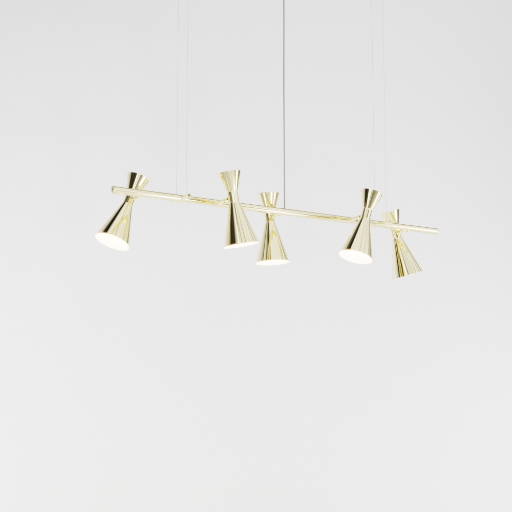 O Pendente Picasso Linear 125cm com 5 Cones da Golden Art é uma peça de iluminação decorativa desenvolvida para projetos que valorizam design contemporâneo, simetria e iluminação eficiente em áreas lineares.