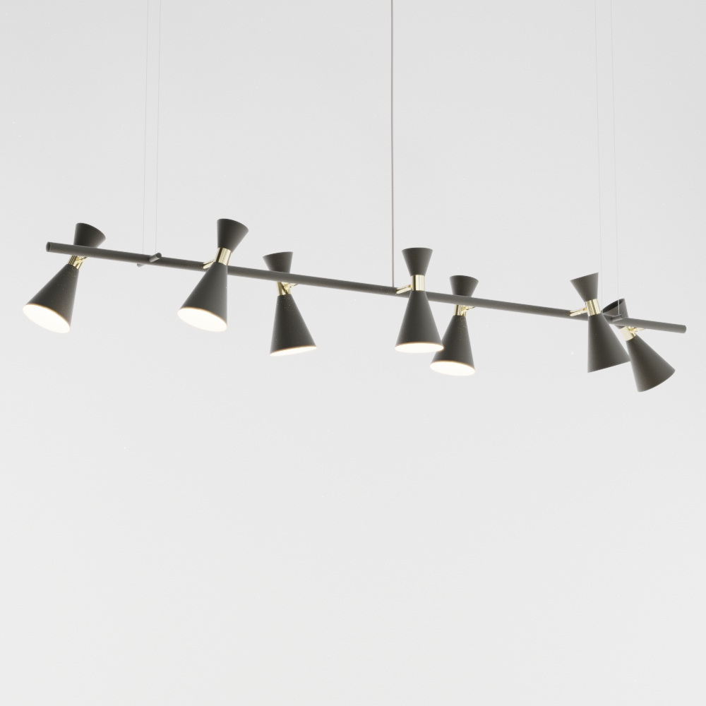 Produzido integralmente em latão, o pendente oferece durabilidade superior, resistência e um visual refinado que valoriza ambientes residenciais e comerciais de alto nível. Seus sete cones criam uma composição linear imponente e elegante.