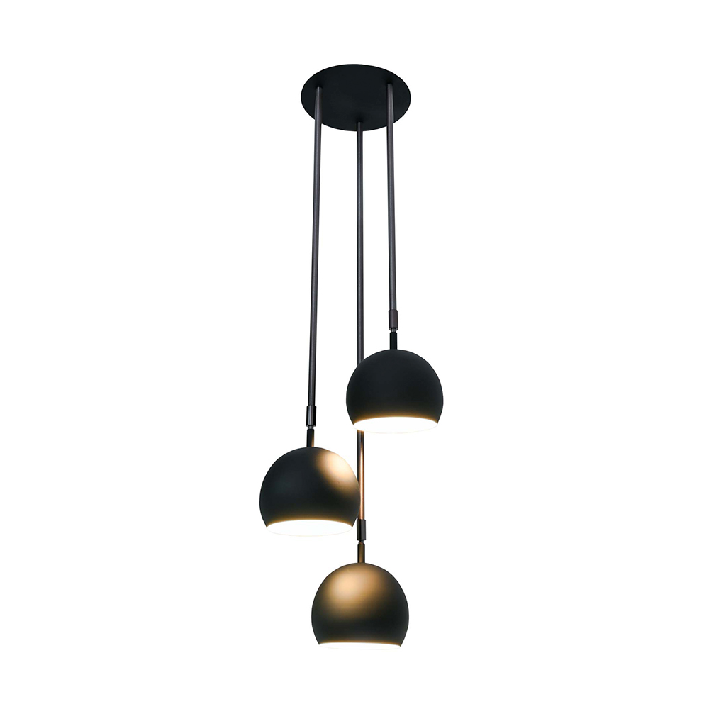 O Pendente Munclair Romã 4664-3, do Studio Munclair, apresenta uma composição harmoniosa de 3 cúpulas 14 x 12 cm que criam luz suave e distribuída. A canopla 20,5 x 2 cm e as hastes de 49, 64 e 79 cm geram um desenho dinâmico, com altura total de 96 cm. Compatível com 3 lâmpadas E27 bolinha LED até 5W (não inclusas).