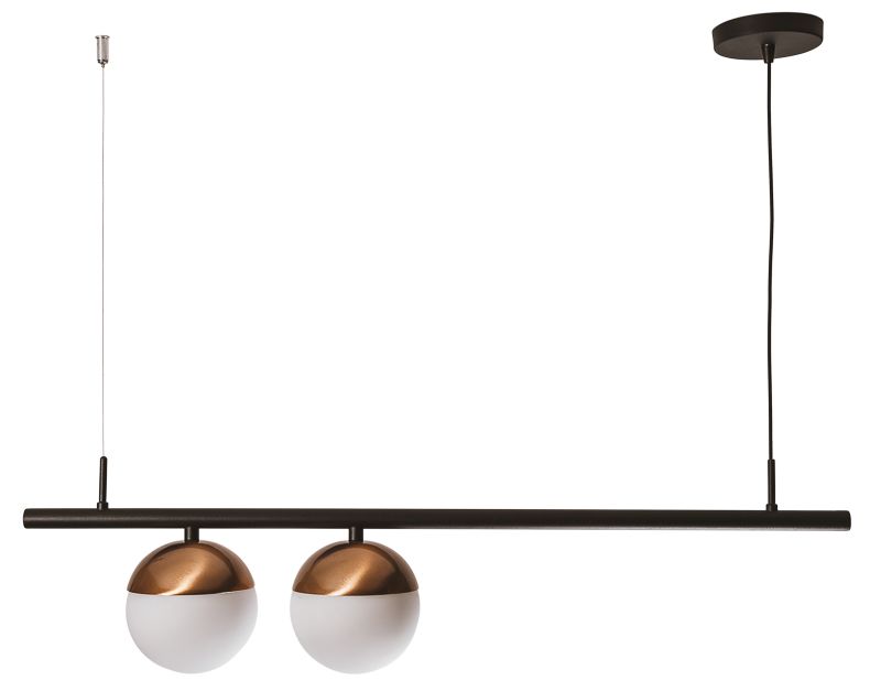 A PENDENTE SNOOKER 16570/2 Usina Design Haste Com 2 GLOBOS DE VIDRO Ø14cm x 14 x 87,5 x 24,5 x 1m Cabo x 02 - E27 G45 Disponibilidade conforme foto. É ideal para iluminação decorativa pois possui um design moderno e sofisticado. Pode ser aplicado em salas de jantar, hall de entrada, proporcionando impacto visual e sofisticação ao ambiente.