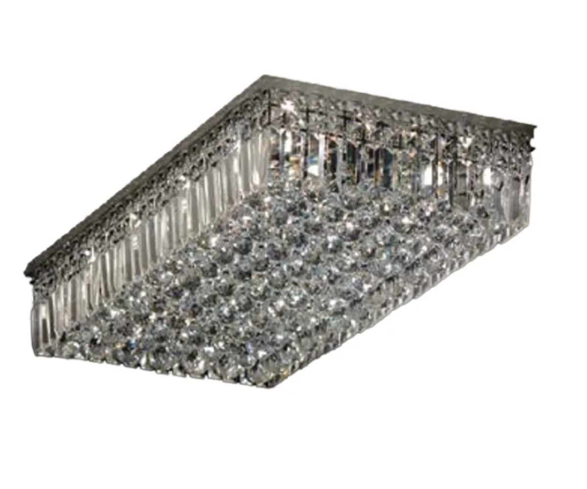 O RTPB-80X40 é um plafon retangular com 10 lâmpadas G9, combinando placas e bolas decorativas para criar iluminação rica em reflexos.