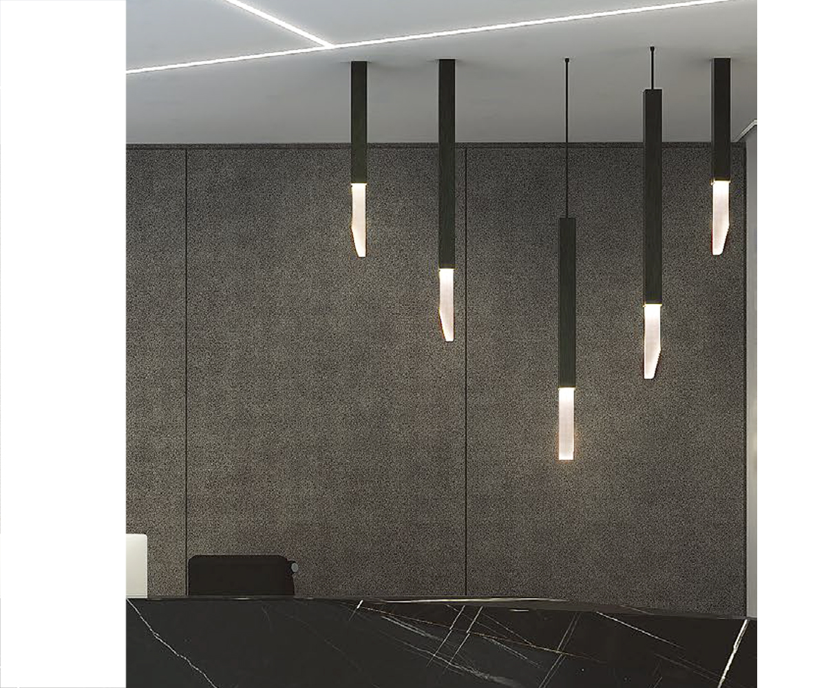 O Plafon DNA Iluminação SUIT-50-PLAF apresenta um formato vertical compacto com 50 cm de altura e seção de 4,5 × 4,5 cm. A peça destaca a estética natural da rocha, proporcionando um ponto de luz elegante e minimalista para projetos que buscam linhas puras e sofisticação.
