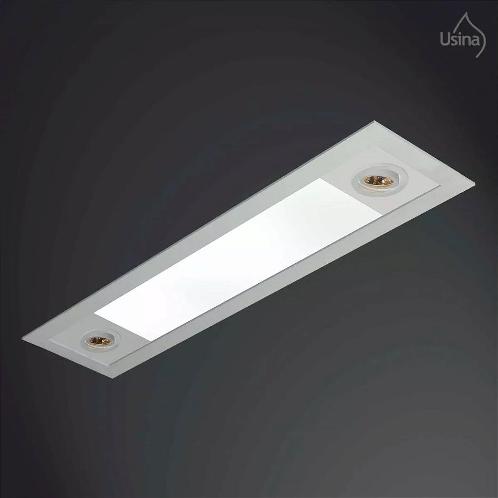 Descrição: Plafon embutido retangular de acrílico leitoso, para lâmpadas T8 e AR 70. É ideal para iluminação decorativa pois possui um design moderno e sofisticado.