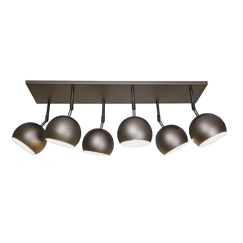 O Plafon Munclair Romã 3420-6 amplia a presença da linha com 6 cúpulas de 14 x 12 cm distribuídas sobre uma canopla 82 x 18 x 1,5 cm, criando um conjunto de alto impacto visual. Com hastes de 12 cm e altura total de 29 cm, o modelo oferece proporções equilibradas e luz confortável para áreas maiores. Compatível com 6 lâmpadas E27 bolinha LED até 5W (não inclusas).